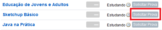 1. Faça o login em sua área de aluno e clique em solicitar prova, do curso que você está estudando e deseja solicitar a avaliação.